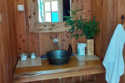 Light, open, and gently warmed by the sun, each shower room is spacious and comfortable. We provide soft white towels, and all grey water is recycled to nourish our garden and compost.