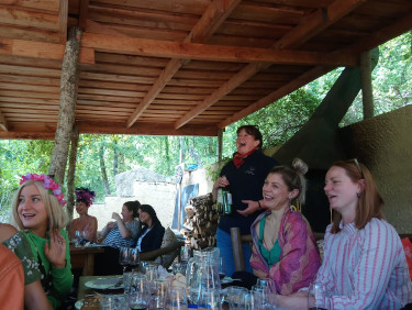 Our stay at Le Camp was truly unforgettable. Anne and Philippe did everything they could to make our group feel welcome and ensure we had the best experience possible. The natural swimming pool was a real highlight – perfect for relaxing in the sun, sharing a drink, and playing games together. The communal kitchen and the large covered outdoor lounge are brilliantly designed; cooking for 23 people, hosting brunches, and enjoying long dinners around a big table was surprisingly easy. And we absolutely loved the barbecue!